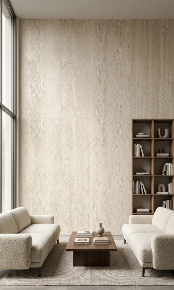 Fornir kamienny to również ultracienki kamień dekoracyjny, często na podkładzie z włókna szklanego. Idealnie sprawdza się jako fornir kamienny na ścianę, fornir kamienny do łazienki, na ścianę TV, kominek, a także jako fornir kamienny na elewację. Dzięki dużym formatom można tworzyć spójne, eleganckie powierzchnie bez dużych podziałów.