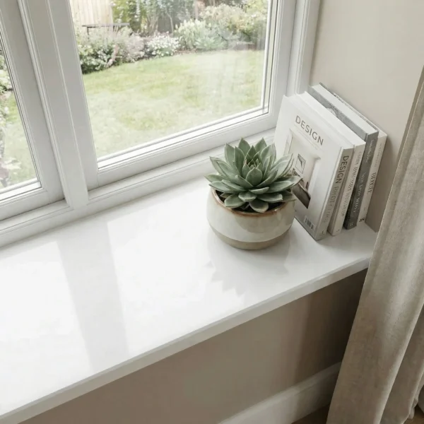 Polare 3 cm to śnieżnobiały parapet wewnętrzny z konglomeratu marmurowego, który wnosi do wnętrza świeżość i elegancję.