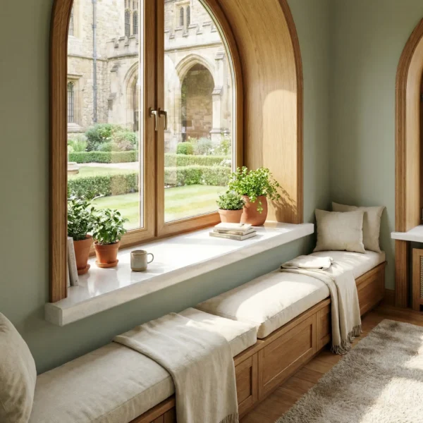 - Salon – gdy chcesz jasnego parapetu, który rozjaśnia wnękę i wygląda premium.