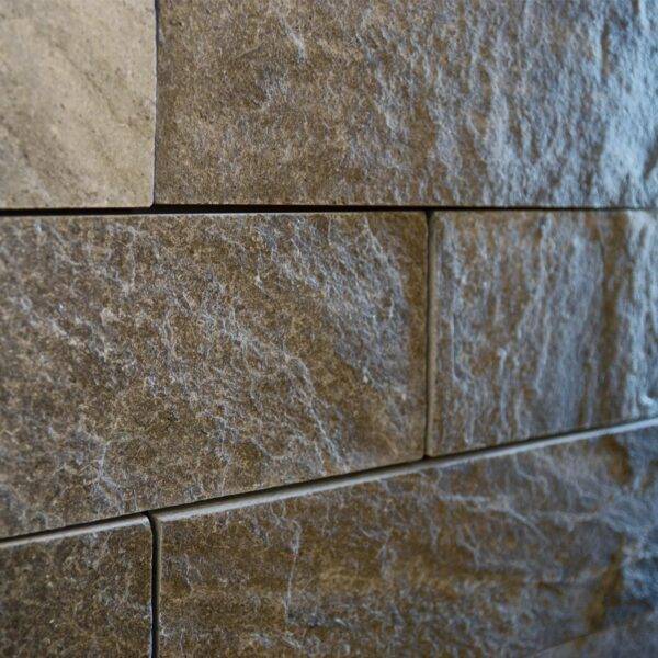 Tym, co czyni ten model wyjątkowo pożądanym na rynku wnętrzarskim, jest jego format i spektakularny efekt reliefu. Płytki o wymiarach 10×30 cm to architektoniczny klasyk (tzw. cegiełka), który pozwala na nieskończoną ilość układów montażowych – od klasycznej jodełki (herringbone), przez mijankę, aż po ultranowoczesne układy pionowe. Naturalna tolerancja grubości (od 0,8 do 1,3 cm) to celowy zabieg gwarantujący uzyskanie wybitnego, trójwymiarowego rzeźbienia na płaskiej ścianie. Dodatkowo, kwarcyt doskonale kumuluje ciepło i jest jedną z najtwardszych skał na ziemi, co czyni go inwestycją dosłownie na pokolenia.
