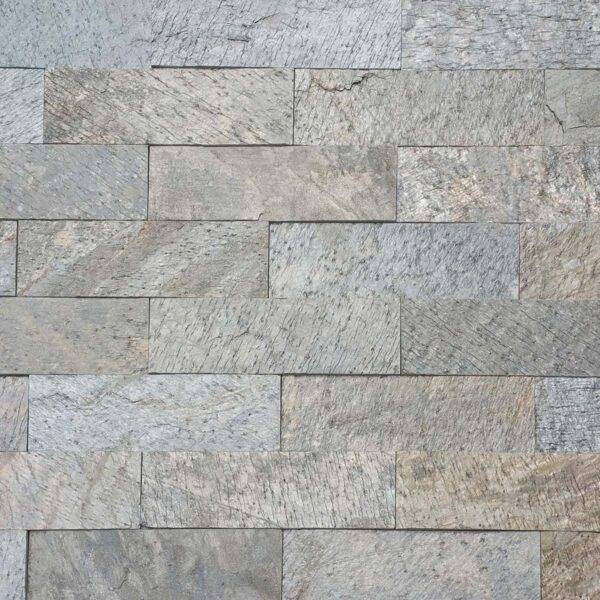 Ich naturalnie łupana, trójwymiarowa powierzchnia wspaniale eksponuje chłodną, szaro-grafitową tonację przełamaną intrygującą, zielono-srebrną poświatą, subtelnie iskrzącą w świetle. Ten autentyczny, niewrażliwy na wilgoć i ekstremalne temperatury materiał bezbłędnie łączy się z ciepłym drewnem, żywą roślinnością oraz złotą armaturą, idealnie wpisując się w projekty nowoczesne, biophilic design, a także naturalne strefy relaksu i odnowy biologicznej.