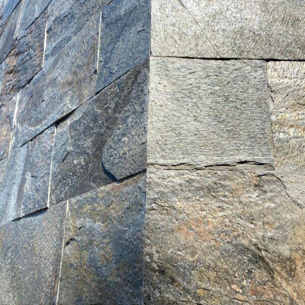 Fascynująca, wysoce zróżnicowana tonacja, w której chłodne srebro i grafit niespodziewanie przenikają się z morską zielenią, głębokim turkusem oraz lśniącymi, złotymi akcentami, fantastycznie ożywia każdą przestrzeń. Z kolei surowa, naturalnie łupana powierzchnia tworzy niesamowitą grę światła i cienia, dodając wnętrzom oraz fasadom rzeźbionej głębi i wprowadzając aurę elitarnego, zmysłowego prestiżu.